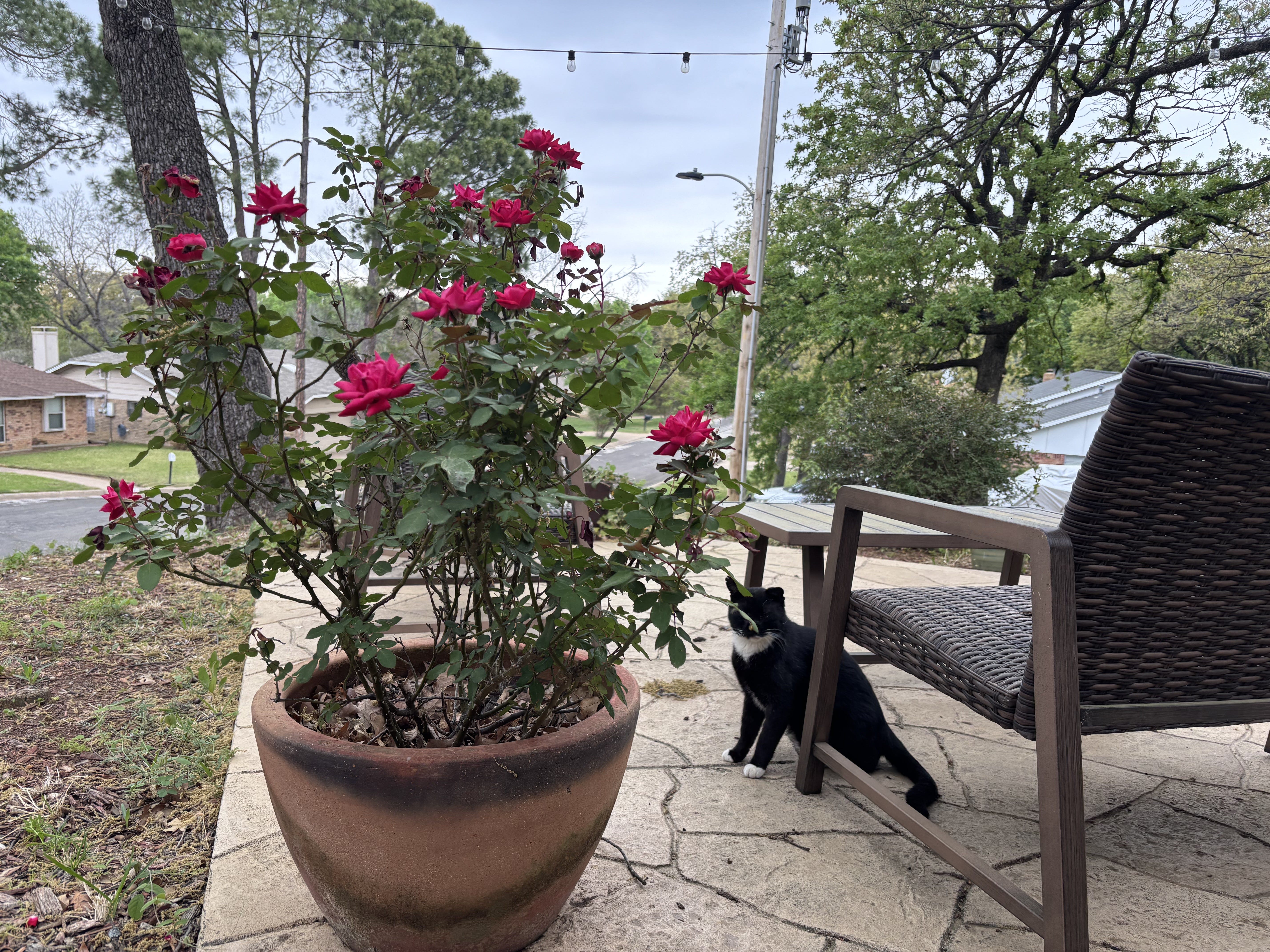 We placed about 8 rose bushes in front of the altar at our church for that year’s Lenten season. After Lent ended most of them were planted outside in front of the stained glass window, don’t tell anyone, but I snuck one of them home.